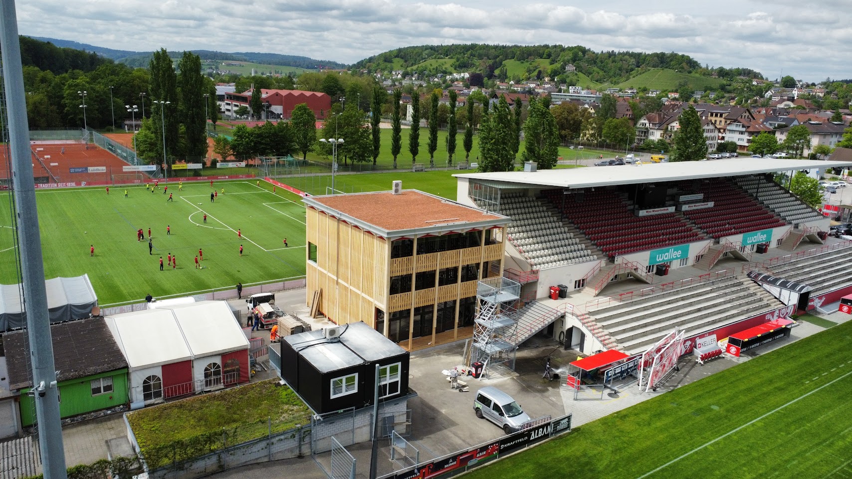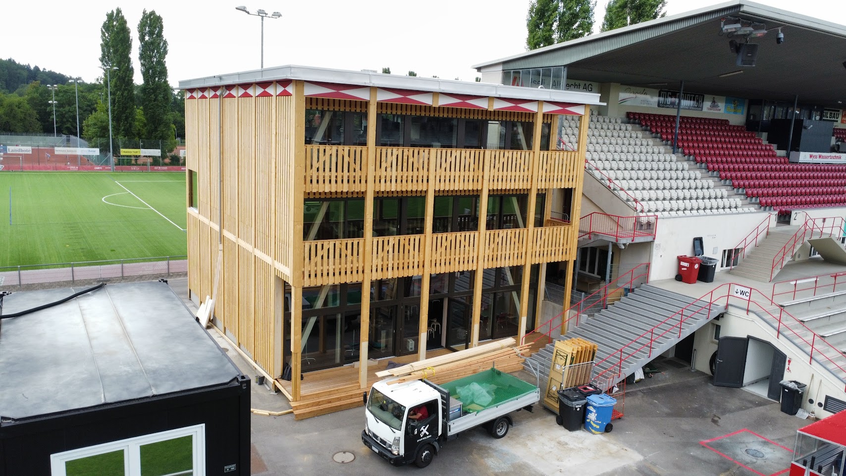 Neubau des FCW Partnerschaftsbereichs in Elementbauweise inklusive Innenausbaus.