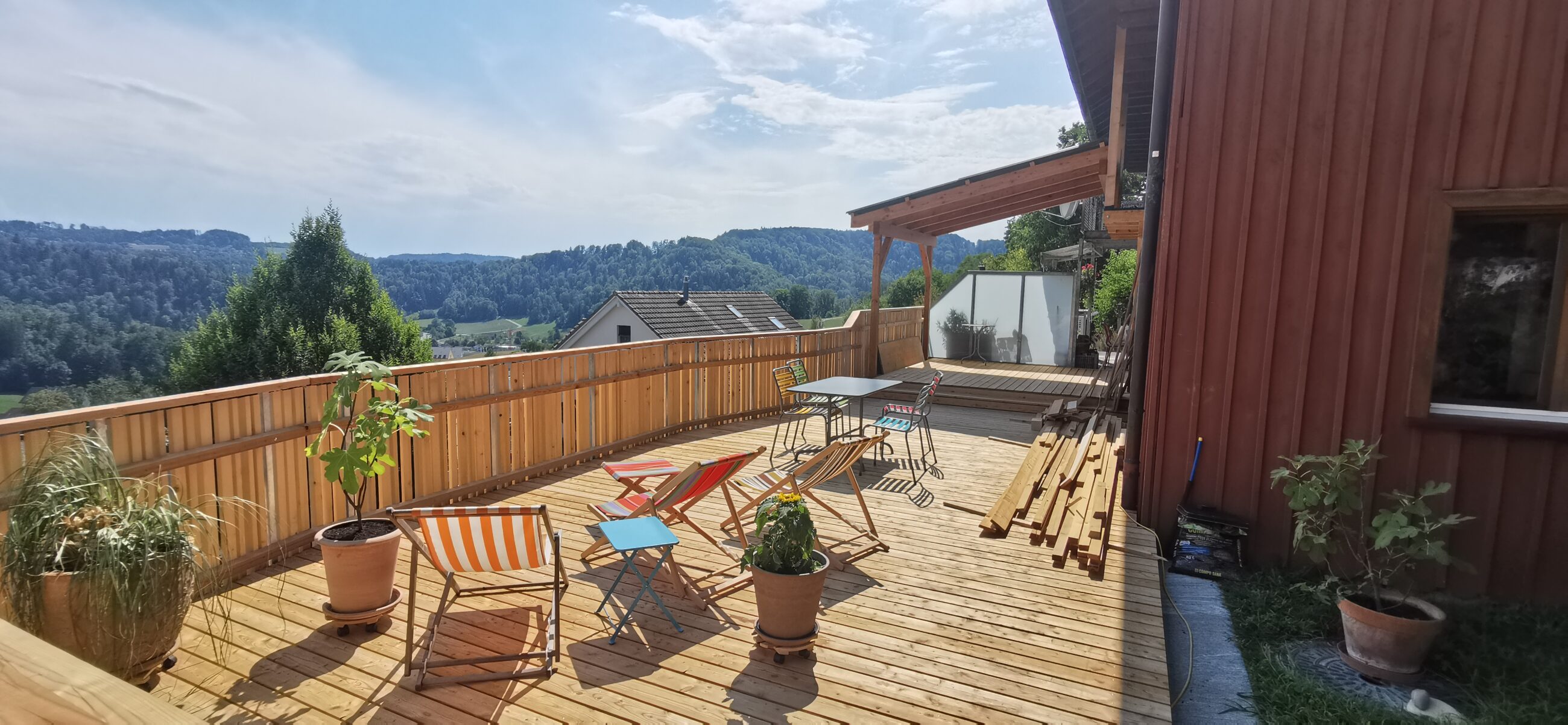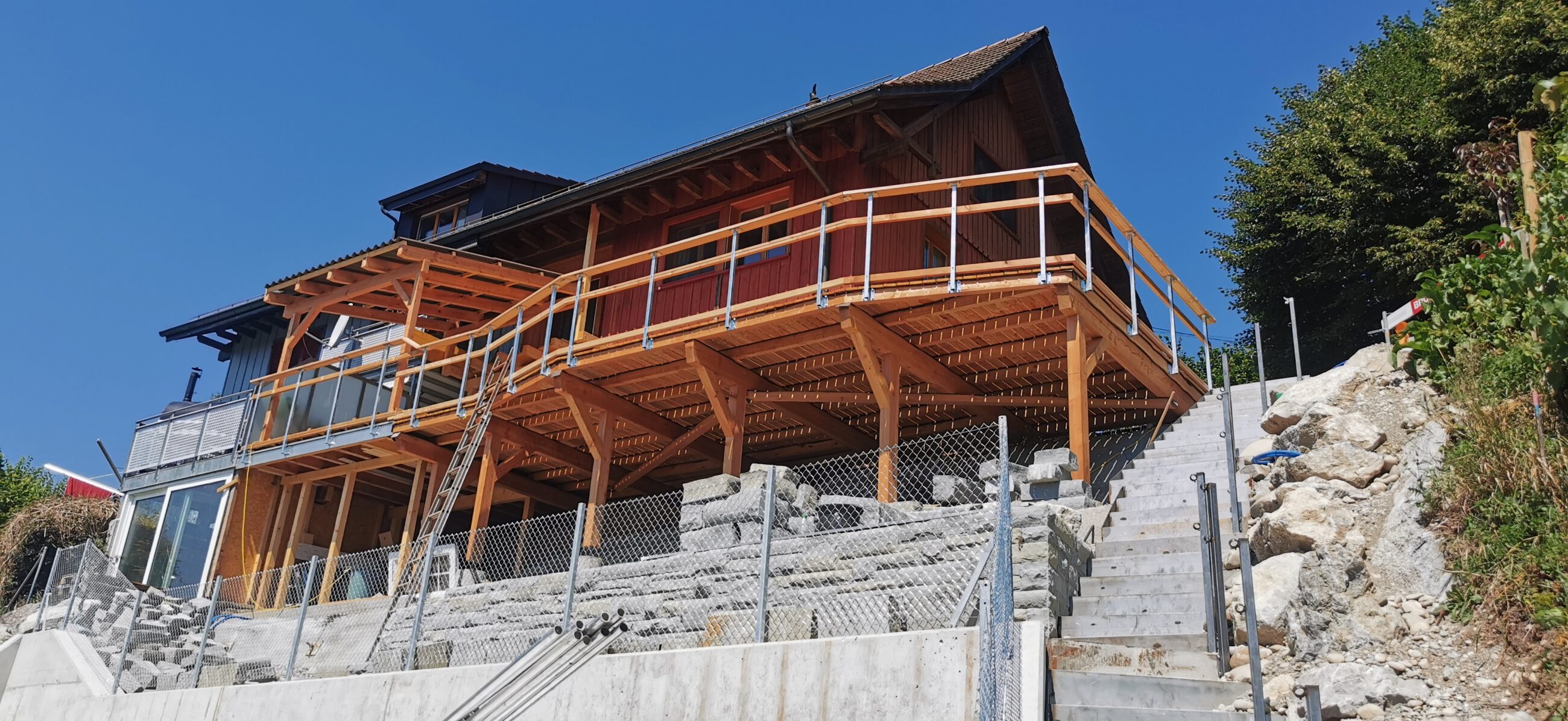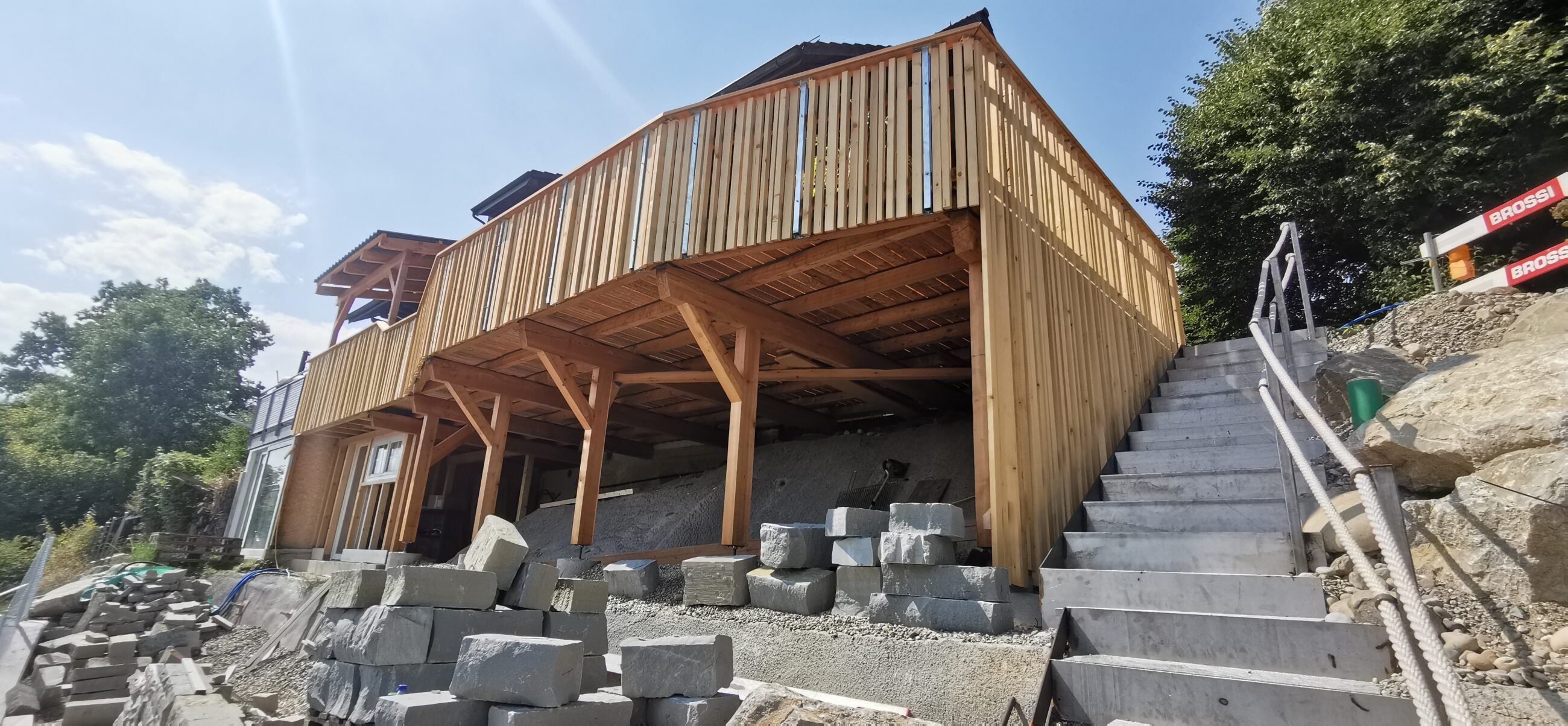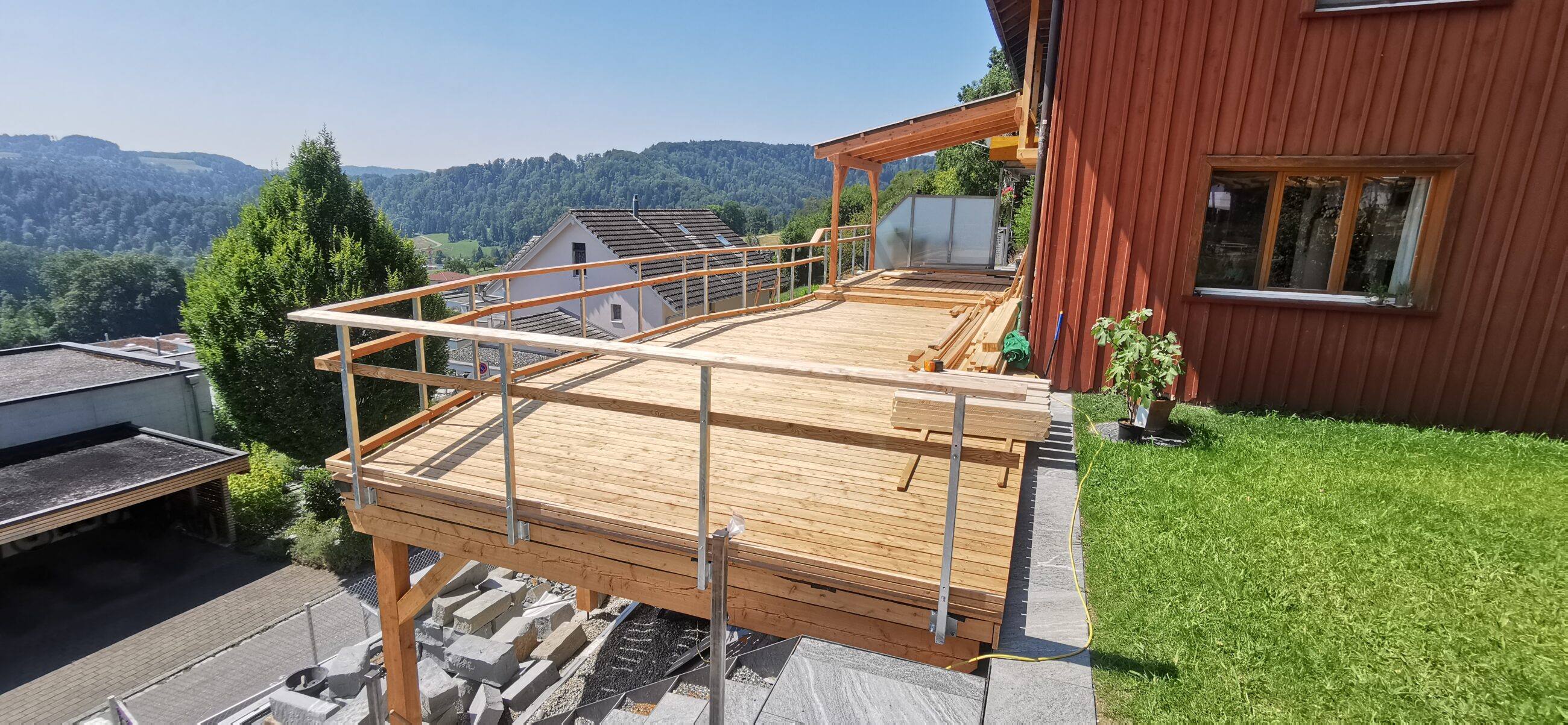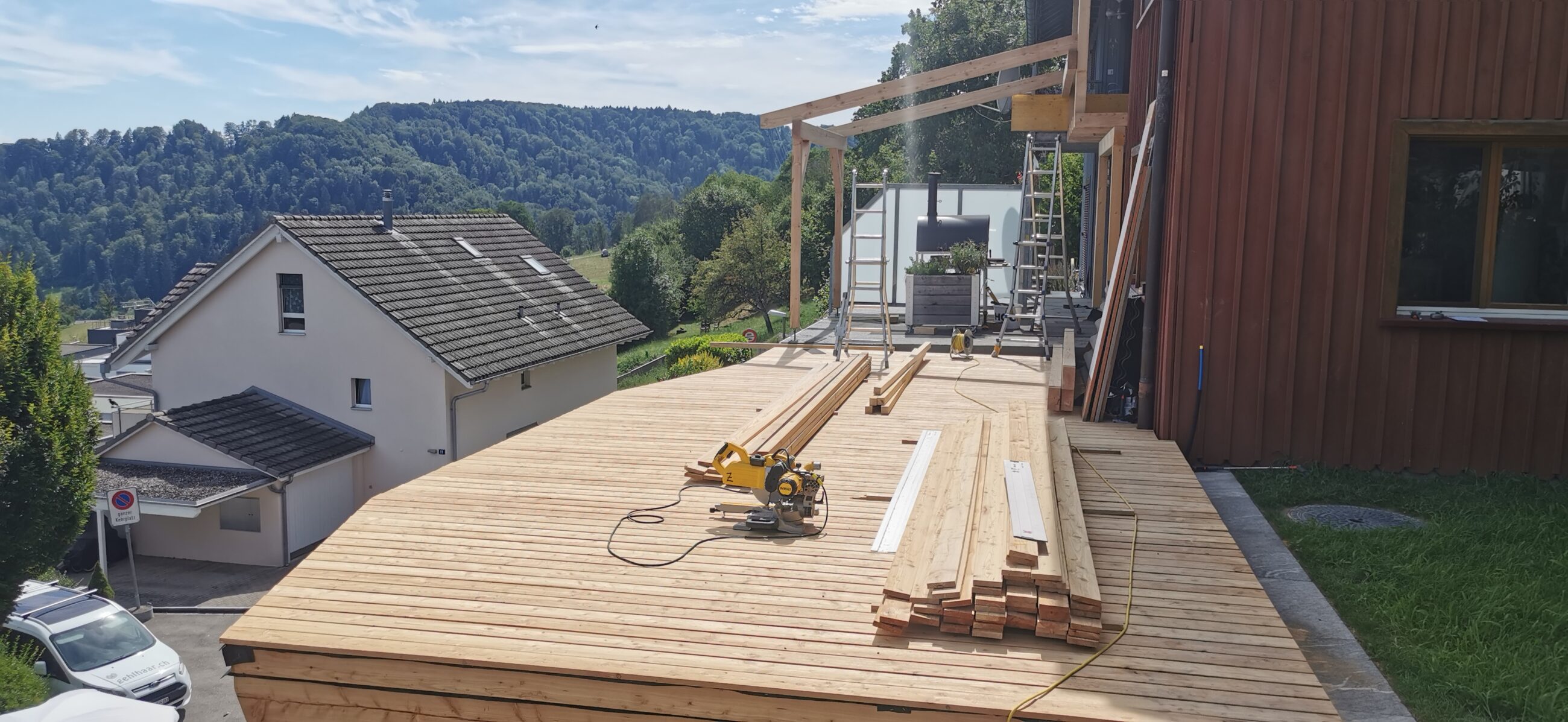 Erstellung der Tragekonstruktion und der Terrasse in Lärche.